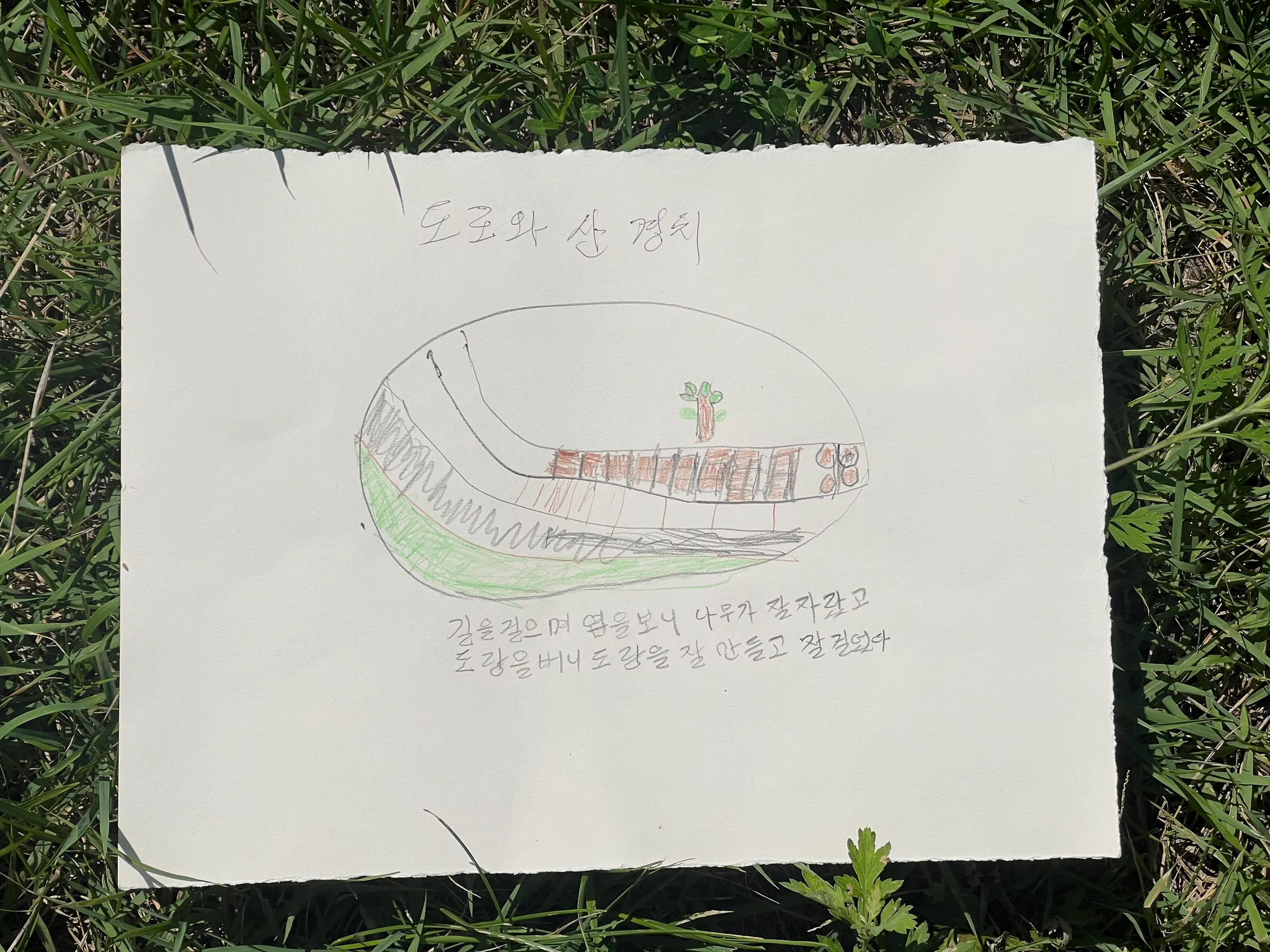 오세중님은 처음엔 수줍어하시는 것처럼 보였지만, 활동에 참여하실 때는 누구보다 열심히 임해주셨습니다. 야외에서 나무를 관찰하고 나무친구를 찾아 이름표를 붙이고 소개하는 활동과 유토로 나무의 얼굴을 만드는 작업 모두 진지하게 완성하셨어요. 나무의 얼굴은 누가 봐도 오세중님으로 보입니다. 특히 그림을 그리실 때는 자신감 있게 선명한 선과 색을 사용하셨는데, 물봉선을 섬세하게 스케치한 작품과 나무가 스스로를 소개하는 글에서 오세중님의 따뜻한 마음이 그대로 느껴졌습니다. 화분에 알록달록한 꽃을 그린 작품과 선명한 오렌지색 바탕에 그린 나뭇잎 작품에서도 오세중님만의 생생한 색감과 표현력이 돋보였어요. 조용히, 그러나 묵묵히 모든 활동을 성실하게 완성하신 오세중님의 작품들은 생태힐링길을 걸으며 자연과 나눈 교감을 진심 어린 기록으로 남겨줍니다.